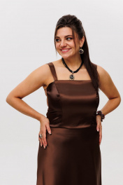 Атласный топ с бретелями и мягким блеском Anelli 1429 корица