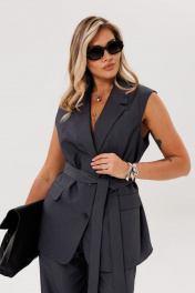Этот полуприлегающий жилет с утончённой однобортной застёжкой на петли и пуговицы станет великолепным дополнением вашего гардероба. Прорезные карманы с аккуратным клапаном и изящный воротник с отложными лацканами придают ему утончённый и стильный вид. Входящий в комплект пояс эффектно подчеркивает талию, создавая идеальный силуэт и добавляя нотку женственности. Жилет прекрасно сочетается как с классическими брюками, так и с романтичными юбками, а также выглядит потрясающе на платьях. Он станет ярким акцентом в вашем образе, подчеркивая ваш безупречный вкус и уникальную индивидуальность. С этим шикарным жилетом у вас есть бесконечные возможности для стилизации — дайте волю своей фантазии и создавайте уникальные образы, которые будут восхищать окружающих каждый день! На модели в жилете цвета «пепельный вулкан» брюки 1702 и рубашка 1412.1. Также можно купить жилет и брюки в костюме 1501. Замеры: Размер 50: ОГ-114; ОТ-110; ОБ-116; ДИ-73; Размер 52: ОГ-119; ОТ-115; ОБ-121; ДИ-73; Размер 54: ОГ-124; ОТ-120; ОБ-126; ДИ-73; Размер 56: ОГ-129; ОТ-125; ОБ-131; ДИ-73; Размер 58: ОГ-134; ОТ-130; ОБ-136; ДИ-73; Размер 60: ОГ-139; ОТ-135; ОБ-141; ДИ-74;