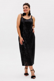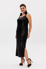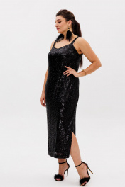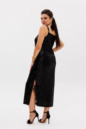 Черное платье из пайеток с разрезом и регулируемыми бретелями Anelli 1507 лимузин