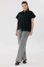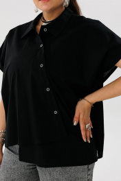 Асимметричная рубашка свободного кроя – это воплощение современной элегантности и нестандартного подхода к классическому силуэту. Ее удлиненный крой до бедра мягко драпируется, создавая динамичные линии и подчеркивая легкость движения. Необычная асимметрия кроя придает модели выразительность: одна сторона может быть слегка удлинена или оформлена мягкими складками, добавляя образу художественную свободу. Короткий цельнокроеный рукав сохраняет лаконичность и комфорт, гармонично сочетаясь с объемным силуэтом. Классический отложной воротник добавляет строгости, балансируя между утонченной формальностью и современной расслабленностью. Застежка на пуговицы по всей длине переда позволяет регулировать степень открытости, создавая вариативность в ношении – от аккуратно застегнутого варианта до свободного, с эффектом небрежной элегантности. Эта рубашка от Анелли – идеальный выбор для тех, кто ценит необычные детали и стремится освежить привычный гардероб. Ее лаконичный, но выразительный дизайн станет ярким акцентом в сочетании с базовыми вещами или дополнит сложные многослойные образы, привнося в них ноту современной легкости. Замеры: Размер 52: ОГ-122; ОБ-126; ДИ-66; ШП-29; Размер 54: ОГ-128; ОБ-130; ДИ-67; ШП-31; Размер 56: ОГ-132; ОБ-134; ДИ-67; ШП-32; Размер 58: ОГ-136; ОБ-138; ДИ-68; ШП-32;
