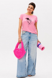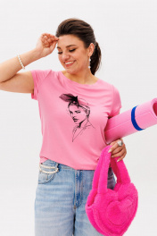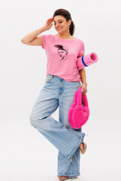 Эта футболка от Анелли — идеальный баланс повседневности и изысканности. Прямой силуэт умеренного объема создает комфортную основу, а изящный принт с изображением леди и объемным бантом из сетки добавляет нотку игривого шика. Мягкая вискозная ткань приятно облегает фигуру, сохраняя легкость движений. Округлая горловина с эффектом "открытого среза" и аккуратная обработка бейкой подчеркивают современный характер модели. Укороченные втачные рукава и такой же аккуратный низ завершают лаконичный, но выразительный образ. Яркий, но нежный, эта футболка станет любимой вещью в вашем гардеробе. Она одинаково хорошо смотрится с джинсами для прогулки или юбкой-мини для свидания. «Барби, бэд барби и Лола» — для тех, кто ценит комфорт, но не готов жертвовать стилем. Простота кроя, качество ткани и эффектный принт делают эту футболку must-have на каждый день. Замеры: Размер 42: ОГ-82; ОБ-88; ОП-30; ДИ-51; ДР-12; Размер 44: ОГ-86; ОБ-92; ОП-30; ДИ-51; ДР-12; Размер 46: ОГ-90; ОБ-96; ОП-32; ДИ-51; ДР-12; Размер 48: ОГ-94; ОБ-100; ОП-32; ДИ-52; ДР-13; Размер 50: ОГ-98; ОБ-104; ОП-34; ДИ-52; ДР-13; Размер 52: ОГ-102; ОБ-108; ОП-34; ДИ-53; ДР-14; Размер 54: ОГ-106; ОБ-112; ОП-36; ДИ-54; ДР-14.