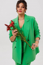 Этот костюм цвета «ирландский зеленый» - воплощение безупречного вкуса и современной женственности. Его насыщенный, глубокий оттенок подобен первому весеннему листку, пробуждающему город от серой дымки. Это не просто ансамбль, а капсула для вдохновения: двубортный жакет свободного прямого кроя с четкими лацканами и функциональными карманами задает тон уверенной элегантности. Особый шик этого образа скрыт в деталях - стоит расстегнуть жакет, и взгляд открывает благородную игру контрастов: цветная подкладка вспыхивает ярким акцентом, делая каждый жест выразительнее, а образ - объемнее и глубже. Полуприлегающий жилет с V-образным вырезом и регулируемым хлястиком на спинке мягко подчеркивает силуэт, а классические брюки с завышенной линией талии делают ноги бесконечно длинными. Каждая деталь здесь продумана до мелочей: качественная подкладка, благородная фактура однотонной ткани, идеальная посадка. Но главная магия этого костюма от Анелли - его универсальность. Носите его для деловых переговоров или торжественного выхода. Или же разлучайте их: жакет накинете на легкое платье, жилет составит компанию джинсам, а брюки станут идеальной парой для кашемирового свитера. Сочный, жизнерадостный цвет подарит вам хорошее настроение каждый день, превращая даже серые будни в праздник стиля. Замеры: Размер 42: Жакет: ОГ-96; ОТ-98; ОБ-100; ОП-32; ДИ-72; ДР-62; Жилет: ОГ-92; ОТ-78; ОБ-84; ДИ-46; Брюки (резинка растянута): ОТ-72; ОБ-100; ДИ-110; ширина по низу - 51; Размер 44: Жакет: ОГ-100; ОТ-102; ОБ-104; ОП-34; ДИ-72; ДР-62; Жилет: ОГ-96; ОТ-84; ОБ-90; ДИ-46; Брюки (резинка растянута): ОТ-74; ОБ-104; ДИ-110; ширина по низу - 51; Размер 46: Жакет: ОГ-104; ОТ-106; ОБ-108; ОП-36; ДИ-73; ДР-62; Жилет: ОГ-100; ОТ-88; ОБ-94; ДИ-47; Брюки (резинка растянута): ОТ-78; ОБ-108; ДИ-110; ширина по низу - 52; Размер 48: Жакет: ОГ-108; ОТ-110; ОБ-112; ОП-38; ДИ-73; ДР-63; Жилет: ОГ-104; ОТ-94; ОБ-98; ДИ-48; Брюки (резинка растянута): ОТ-82; ОБ-112; ДИ-111; ширина по низу - 54; Размер 50: Жакет: ОГ-112; ОТ-114; ОБ-116; ОП-38; ДИ-73; ДР-63; Жилет: ОГ-108; ОТ-98; ОБ-102; ДИ-49; Брюки (резинка растянута): ОТ-86; ОБ-116; ДИ-111; ширина по низу - 54; Размер 52: Жакет: ОГ-116; ОТ-118; ОБ-120; ОП-39; ДИ-73; ДР-63; Жилет: ОГ-112; ОТ-102; ОБ-106; ДИ-50; Брюки (резинка растянута): ОТ-90; ОБ-120; ДИ-111; ширина по низу - 55; Размер 54: Жакет: ОГ-120; ОТ-124; ОБ-126; ОП-40; ДИ-73; ДР-63; Жилет: ОГ-116; ОТ-108; ОБ-110; ДИ-52; Брюки (резинка растянута): ОТ-94; ОБ-124; ДИ-112; ширина по низу - 56; Размер 56: Жакет: ОГ-124; ОТ-126; ОБ-130; ОП-41; ДИ-73; ДР-63; Жилет: ОГ-120; ОТ-114; ОБ-116; ДИ-54; Брюки (резинка растянута): ОТ-98; ОБ-128; ДИ-112; ширина по низу - 58; Размер 58: Жакет: ОГ-130; ОТ-134; ОБ-136; ОП-42; ДИ-74; ДР-64; Жилет: ОГ-124; ОТ-118; ОБ-120; ДИ-56; Брюки (резинка растянута): ОТ-102; ОБ-130; ДИ-111; ширина по низу - 58;