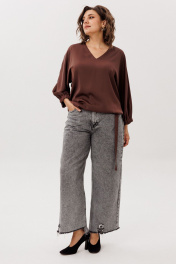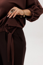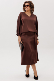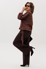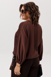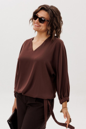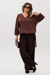 Позвольте себе сиять в этой невероятно элегантной блузе от Анелли, где каждая деталь продумана для создания безупречного образа. Мягкая струящаяся вискоза с благородным блеском мягко ниспадает, скрывая фигуру в лаконичном прямом силуэте свободного кроя, который дарит непревзойденное чувство комфорта и лёгкой невесомости. Глубокий V-образный вырез горловины служит изящным акцентом, мягко обрамляя лицо и добавляя образу женственности и шарма. Особую динамику и индивидуальность блузе придают детали: цельнокроеные рукава три четверти подчёркивают целостность и плавность линий, а притачной пояс и манжеты, собранные в нежную сборку благодаря эластичной резинке, создают выразительный контраст с текучестью основной ткани. Эта умная конструкция позволяет вам самостоятельно регулировать длину блузы, творчески преобразуя её силуэт — от парящего и расслабленного до более собранного и чёткого. Именно это сочетание роскошной ткани, безупречного кроя и продуманных деталей делает блузу истинной жемчужиной гардероба. Она станет верной спутницей в будни, даря комфорт в офисе, и безупречно дополнит ваш образ в день особенный, когда хочется чувствовать себя сияющей и неотразимой. На модели в блузе цвета "бельгийский шоколад" брюки 1702 и юбка 1510. Замеры: Размер 52: ОГ-120, ОБ-124, ОП-52, ДИ-71, ДР-62; Размер 54: ОГ-124, ОБ-128, ОП-53, ДИ-72, ДР-63; Размер 56: ОГ-128, ОБ-132, ОП-54, ДИ-72, ДР-62; Размер 58: ОГ-134, ОБ-138, ОП-56, ДИ-74, ДР-63; Размер 60: ОГ-138, ОБ-142, ОП-57, ДИ-74, ДР-62; Размер 62: ОГ-142, ОБ-146, ОП-58, ДИ-75, ДР-63.