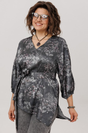 Этот блузон от Анелли в цвете «графитовый гербарий» создан для тех, кто ценит в вещах и стиль, и универсальность. Свободный крой и мягкая линия спущенного плеча дарят непревзойдённый комфорт, а элегантный V-вырез удлиняет шею, создавая женственный акцент. Укороченный рукав, собранный на резинке, добавляет образу лёгкую игривость и динамику. Главная особенность этой модели — продуманная многозадачность. Пояс в комплекте позволяет вам самостоятельно создавать нужный образ: затяните его, чтобы подчеркнуть талию и создать фигуру «песочные часы», или отпустите для расслабленного силуэта в стиле бохо. Завершает картину асимметричный низ с разрезом — деталь, которая делает блузу по-настоящему уникальной и визуально вытягивает силуэт. Это идеальная вещь-трансформер, которая подстроится под ваше настроение, легко переходя из дневного образа в вечерний. Размер 52: ОГ-120; ОБ-128; ОП-56; ДИ по спинке – 74; ДР-29; ШП-28; ДИ полочки – 75; Размер 54: ОГ-124; ОБ-132; ОП-57; ДИ по спинке – 75; ДР-28; ШП-29; ДИ полочки – 76; Размер 56: ОГ-130; ОБ-138; ОП-58; ДИ по спинке – 76; ДР-28; ШП-29; ДИ полочки – 77; Размер 58: ОГ-134; ОБ-142; ОП-60; ДИ по спинке – 77; ДР-28; ШП-30; ДИ полочки – 78; Размер 60: ОГ-138; ОБ-146; ОП-62; ДИ по спинке – 77; ДР-27; ШП-31; ДИ полочки – 78; Размер 62: ОГ-142; ОБ-150; ОП-62; ДИ по спинке – 78; ДР-27; ШП-32; ДИ полочки – 79.