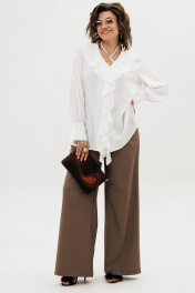 Эта блуза от Анелли — воплощение нежной романтики и воздушной лёгкости. Её прямой свободный крой струится мягкими складками, создавая изящный и непринуждённый силуэт, а лёгкая воздушность ткани придаёт образу пленительную невесомость. Глубокий V-образный вырез, украшенный воланами, подчеркивает изысканно-романтичный характер блузы. Эту историю дополняет игра завязок: их можно распустить для непринуждённой элегантности или завязать на шее, чтобы подчеркнуть трогательную женственность. Мягкие сборки на длинных рукавах, переходящие в аккуратные манжеты, и лёгкие разлетающиеся разрезы по бокам завершают картину, делая каждый жест и каждое движение частью изящного и мечтательного стиля. На модели брюки 1702. Замеры: Размер 50: ОГ-116, ОТ-120, ОБ-124, ОП-42, ДИ-73, ДР-65; Размер 52: ОГ-120, ОТ-124, ОБ-128, ОП-44, ДИ-74, ДР-65; Размер 54: ОГ-124, ОТ-128, ОБ-132, ОП-46, ДИ-74, ДР-64; Размер 56: ОГ-128, ОТ-132, ОБ-136, ОП-48, ДИ-74, ДР-64; Размер 58: ОГ-132, ОТ-136, ОБ-140, ОП-50, ДИ-74, ДР-65; Размер 60: ОГ-136, ОТ-140, ОБ-144, ОП-50, ДИ-75, ДР-64; Размер 62: ОГ-140, ОТ-144, ОБ-148, ОП-52, ДИ-75, ДР-65.