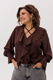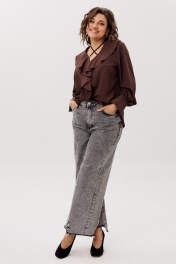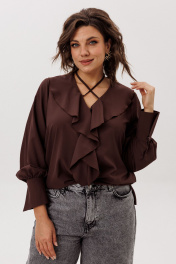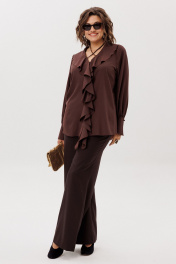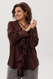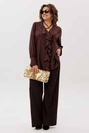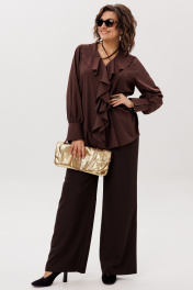 Эта блуза от Анелли — воплощение нежной романтики и воздушной лёгкости. Её прямой свободный крой струится мягкими складками, создавая изящный и непринуждённый силуэт, а лёгкая воздушность ткани придаёт образу пленительную невесомость. Глубокий V-образный вырез, украшенный воланами, подчеркивает изысканно-романтичный характер блузы. Эту историю дополняет игра завязок: их можно распустить для непринуждённой элегантности или завязать на шее, чтобы подчеркнуть трогательную женственность. Мягкие сборки на длинных рукавах, переходящие в аккуратные манжеты, и лёгкие разлетающиеся разрезы по бокам завершают картину, делая каждый жест и каждое движение частью изящного и мечтательного стиля. На модели брюки 1702. Размер 50: ОГ-116, ОТ-120, ОБ-124, ОП-42, ДИ-73, ДР-65; Размер 52: ОГ-120, ОТ-124, ОБ-128, ОП-44, ДИ-74, ДР-65; Размер 54: ОГ-124, ОТ-128, ОБ-132, ОП-46, ДИ-74, ДР-64; Размер 56: ОГ-128, ОТ-132, ОБ-136, ОП-48, ДИ-74, ДР-64; Размер 58: ОГ-132, ОТ-136, ОБ-140, ОП-50, ДИ-74, ДР-65; Размер 60: ОГ-136, ОТ-140, ОБ-144, ОП-50, ДИ-75, ДР-64; Размер 62: ОГ-140, ОТ-144, ОБ-148, ОП-52, ДИ-75, ДР-65.