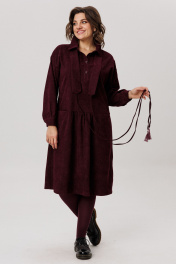 Это платье – настоящая находка для ценителей уютного стиля и благородных оттенков. Цветовая палитра в сочетании с мягкой фактурой вельвета создают невероятно элегантный и теплый образ. Длинный рукав с манжетой, спущенное плечо и волан со сборкой придают платью легкость и воздушность. Притачная планка на поясе выгодно подчеркивает талию, а пояс с кисточками привлекает внимание. Не оставит без внимания отложной воротник на стойке и застежка на пуговицы, подчеркивающие линии декольте. Оно согреет вас не только теплом, но и душой в прохладные времена. Размер 42: ОГ-88, ОТ-86, ОБ-94, ОП-50, ДИ-104, ДР-50, ШП-19; Размер 44: ОГ-92, ОТ-90, ОБ-98, ОП-50, ДИ-104, ДР-49 ШП-19; Размер 46: ОГ-96, ОТ-94, ОБ-102, ОП-50, ДИ-104, ДР-50, ШП-19; Размер 48: ОГ-100, ОТ-98, ОБ-106, ОП-52, ДИ-105, ДР-50, ШП-19; Размер 50: ОГ-104, ОТ-102, ОБ-110, ОП-52, ДИ-103, ДР-50, ШП-19; Размер 52: ОГ-108, ОТ-106, ОБ-114, ОП-52, ДИ-104, ДР-49, ШП-20; Размер 54: ОГ-112, ОТ-110, ОБ-118, ОП-52, ДИ-105, ДР-50, ШП-50.