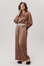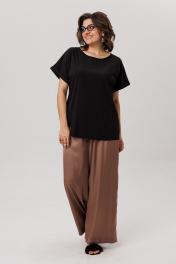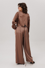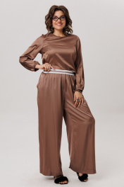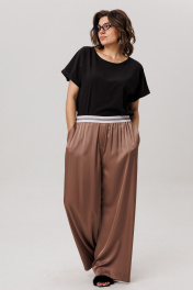 Легкие и струящиеся брюки, сотканные из изысканного арманийского шелка, дарят ощущение невесомой роскоши. Их высокая посадка и мягкие моделирующие защипы у талии создают безупречный, подчеркнуто элегантный силуэт. Свободный, расширяющийся к низу крой обеспечивает невероятную легкость движения и формирует динамичный образ. Эти брюки от Анелли - идеальный спутник для особых выходов, праздничных мероприятий и светских раутов, где важны блеск и безупречный крой. В то же время практичная резинка на поясе и удобные боковые карманы делают их удивительно комфортным и функциональным выбором и в теплое время года. Эта модель позволит вам создать цельный элегантный образ для любого повода - от неспешной повседневности до торжественного выхода. На модели в брюках в цвете «карамель» блуза 1716 и топ 1576. Размер 42: ОТ-80; ОБ-112; ДИ-104; ширина по низу - 62; Размер 44: ОТ-84; ОБ-116; ДИ-105; ширина по низу - 64; Размер 46: ОТ-88; ОБ-120; ДИ-104; ширина по низу - 66; Размер 48: ОТ-92; ОБ-124; ДИ-105; ширина по низу - 66; Размер 50: ОТ-96; ОБ-128; ДИ-104; ширина по низу - 68; Размер 52: ОТ-100; ОБ-132; ДИ-103; ширина по низу - 68.