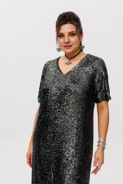 Кристальная россыпь пайеток, сотканная из тысячи отблесков - это уже не сиюминутный блеск, а вечная игра света - вне времени и трендов. V-образный вырез и мягкий рукав создают изящный силуэт, ведущий к идеальной длине, где скромность встречается с элегантностью. Платье в цвете «золото» на нежной подкладке, не просто украшает - оно ощущается как вторая кожа, даруя забытую свободу движения. В нём чувствуется только лёгкость и уверенность. Платье готово к празднику: стать центром внимания под люстры свадебного банкета или строгий свет корпоратива. Его блеск можно укрыть под оверсайз-жакетом для сдержанного шика или позволить ему дышать, сияя открыто. Одинаково гармонирует и с изящным каблучком, и с дерзкими кедами, отказываясь от строгих правил. Это платье от Анелли - чистый холст для вашей индивидуальности. Оно приглашает быть собой: простой, нарядной, сияющей изнутри и снаружи. Чувствуйте себя самой красивой. Сияйте. На моделе в платье цвета «плутоний» шикарное болеро 1445. Размер 50: ОГ-106; ОТ-108; ОБ-114; ДИ-96; ДР-35; ОП-36; Размер 52: ОГ-110; ОТ-112; ОБ-118; ДИ-98; ДР-37; ОП-38; Размер 54: ОГ-114; ОТ-116; ОБ-122; ДИ-100; ДР-41; ОП-40; Размер 56: ОГ-118; ОТ-120; ОБ-126; ДИ-101; ДР-43; ОП-41; Размер 58: ОГ-122; ОТ-124; ОБ-130; ДИ-100; ДР-45; ОП-41.