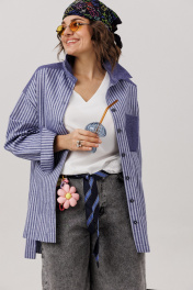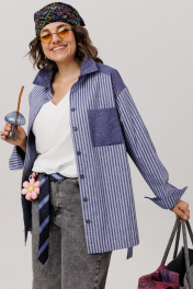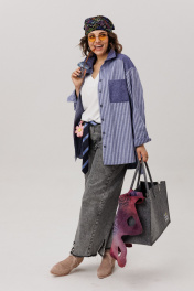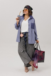 Откройте гардероб своей повседневной свободы. Эта рубашка в цвете «предгрозовая синь» - воплощение безмятежного комфорта, где мягкость премиального хлопка обволакивает тело невесомой лаской. Её прямой, воздушный силуэт дарит пространство для движения и мысли, а спущенные рукава, собранные на изящные манжеты, добавляют образу непринуждённую элегантность. Строгий отложной воротник на стойке и функциональная застёжка на пуговицы по всей длине придают вещи аккуратную чёткость. Детали - кокетка, карман, воротник и манжеты, выполненные из контрастной однотонной ткани, - создают тонкую игру текстур. Асимметричный низ мягко завершает силуэт, предлагая современное прочтение классической формы. Это больше, чем просто рубашка от Анелли. Это уютная вселенная, в которую хочется возвращаться снова и снова. Идеальный оверсайз, созданный для того, чтобы чувствовать себя собой каждый день. На модели топ с кружевом 1664. Размер 52: ОГ-120; ОТ-122; ОБ-124; ДИ-82; ДР-56; ОП-52; ШП-20; Размер 54: ОГ-124; ОТ-126; ОБ-128; ДИ-82; ДР-56; ОП-54; ШП-20; Размер 56: ОГ-128; ОТ-130; ОБ-132; ДИ-82; ДР-56; ОП-56; ШП-21; Размер 58: ОГ-132; ОТ-134; ОБ-136; ДИ-83; ДР-57; ОП-56; ШП-21; Размер 60: ОГ-136; ОТ-138; ОБ-140; ДИ-82; ДР-58; ОП-58; ШП-21; Размер 62: ОГ-140; ОТ-142; ОБ-144; ДИ-83; ДР-58; ОП-60; ШП-21.