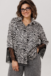 Роскошная рубашка от Анелли с фигурным низом в цвете «зебра». Мягкое спущенное плечо задаёт плавный ритм всему силуэту, а отложной воротник и идеально скрытая застёжка на пуговицах говорят о внимании к деталям. Главная поэзия заключена в рукавах. Длинные, втачные, они раскрываются нежным веером французского кружева у запястья - воздушный штрих, превращающий самый обычный день в моменты тихой роскоши. Это деталь-намёк, тонкий шёпот изысканности, придающий образу неуловимый шарм и глубину. Её универсальность - в этом же изяществе. Она станет сердцем повседневного образа с джинсами и лаконичным топом, или элегантной основой под строгие брюки и каблуки для вечера. А в комплекте с жакетом её кружевные манжеты превращаются в изысканный акцент, бережно обрамляющий запястье и придающий законченность самому сдержанному ансамблю. Размер 48: ОГ-116; ОБ-120; ОП-38; ДИ-69; ДР-56; ШП-16.5; Размер 50: ОГ-118; ОБ-124; ОП-40; ДИ-69; ДР-56; ШП-17; Размер 52: ОГ-124; ОБ-128; ОП-42; ДИ-70; ДР-56; ШП-17; Размер 54: ОГ-128; ОБ-132; ОП-44; ДИ-70; ДР-55; ШП-17; Размер 56: ОГ-132; ОБ-136; ОП-44; ДИ-71; ДР-55; ШП-18; Размер 58: ОГ-136; ОБ-140; ОП-46; ДИ-71; ДР-55; ШП-18; Размер 60: ОГ-140; ОБ-144; ОП-46; ДИ-71; ДР-55; ШП-18.