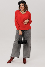 Эта блуза от Анелли - воплощение изящного баланса между повседневным комфортом и тонкой эстетикой. Мягкая ткань драпируется полуприлегающим силуэтом, ласково обрисовывая линии фигуры. Особое внимание притягивают рукава: втачные, с элегантными разрезами по всей длине, они завершаются манжетами на пуговицах, украшенными навесными петельками - деталь, придающая образу неповторимый шарм. Глубокий V-образный вырез с застежкой позволяет варьировать степень открытости, делая блузу универсальной спутницей: она столь же органично смотрится с юбкой-карандашом на высоких каблуках, так и с парой классических джинсов. Роскошный «тот самый красный» цвет, всегда дарит особенно приподнятое и праздничное настроение. Размер 50: ОГ-108; ОТ-108; ОБ-115; ДИ-57; ДР-59; ОП-36; Размер 52: ОГ-112; ОТ-112; ОБ-119; ДИ-57; ДР-59; ОП-38; Размер 54: ОГ-118; ОТ-118; ОБ-125; ДИ-58; ДР-59; ОП-40; Размер 56: ОГ-124; ОТ-124; ОБ-131; ДИ-60; ДР-59; ОП-42; Размер 58: ОГ-130; ОТ-130; ОБ-136; ДИ-61; ДР-59; ОП-42; Размер 60: ОГ-136; ОТ-136; ОБ-141; ДИ-62; ДР-59; ОП-44.