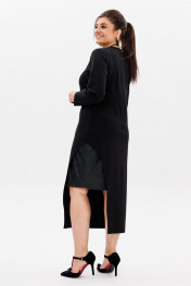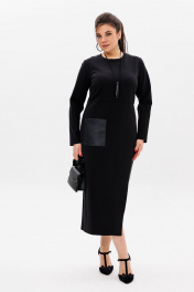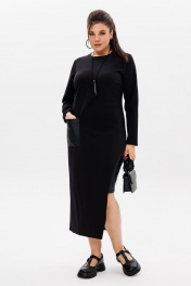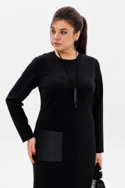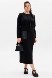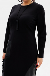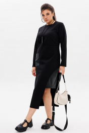 Черное трикотажное платье с эко-кожаным акцентом Anelli 51 престиж