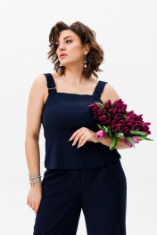 Топ является базовым предметом гардероба. Выполнен из ткани плательной группы. Полуприлегающий силуэт с рельефами по переду и спинке. Широкие бретели с декоративными деталями по переду дополняют образ. Застежка на молнию в среднем шве спинки. Отличное дополнение к брюкам, юбке, жакету. На модели брюки от Анелли 1416.1. Замеры: Размер 44: ОГ-86; ОТ-78; ОБ-96; ДИ-29; Размер 46: ОГ-90; ОТ-82; ОБ-102; ДИ-30; Размер 48: ОГ-94; ОТ-86; ОБ-108; ДИ-30; Размер 50: ОГ-98; ОТ-90; ОБ-114; ДИ-30; Размер 52: ОГ-104; ОТ-91; ОБ-118; ДИ-32.