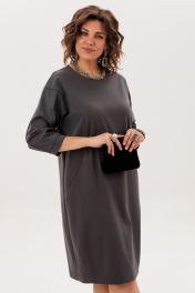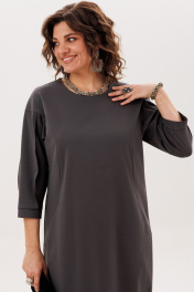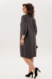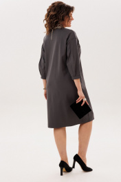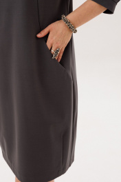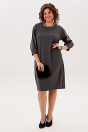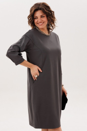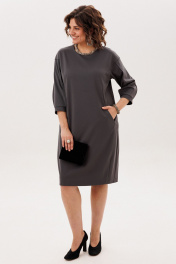 Платье выполнено из трикотажа премиум класса из натурального волокна и синтетических добавок в цвете «маренго». Силуэт свободный. За счёт выточек размещённых внизу, платье имеет форму"баллон". По переду выполнены рельефы от проймы до линии бедра, в которых расположены карманы. Спущенная линия плеча и горловина круглой формы добавляет женственности образу. Рукава ниже локтя расширяются за счёт рельефов, отстроченных на ребро и заканчиваются манжетами. Размер 52: ОГ-114; ОТ-114; ОБ-120; ОП-45; ДИ-102; ДР-39; ШП-18; Размер 54: ОГ-118; ОТ-118; ОБ-124; ОП-46; ДИ-103; ДР-40; ШП-18.5; Размер 56: ОГ-122; ОТ-122; ОБ-128; ОП-47; ДИ-104; ДР-40; ШП-18.5; Размер 58: ОГ-126; ОТ-126; ОБ-132; ОП-48; ДИ-105; ДР-40.5; ШП-18.5; Размер 60: ОГ-130; ОТ-130; ОБ-136; ОП-49; ДИ-105; ДР-40.5; ШП-19.