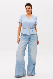 Элегантный жакет с полуприлегающим силуэтом, который подчеркивает фигуру благодаря стройным рельефам. Особенностью модели является притачная баска со встречными складками, придающая образу утонченность и женственность. V-образный вырез горловины добавляет нотку изысканности, а центральная застежка на пуговицы обеспечивает удобство и стиль. Жакет оснащен втачным коротким рукавом. Спинка украшена рельефами и имеет средний шов, что создает гармоничный силуэт. В комплекте идет пояс, который позволяет дополнительно акцентировать талию и завершить образ. Этот жакет станет универсальным элементом вашего гардероба, подходя как для офисных встреч, так и для вечерних выходов. На модели костюм с юбкой 1549. Замеры: Размер 50: ОГ-102; ОТ-89; ОП-40; ДИ-51; ДР-20; Размер 52: ОГ-106; ОТ-92; ОП-40; ДИ-53; ДР-21; Размер 54: ОГ-110; ОТ-100; ОП-42; ДИ-54; ДР-21; Размер 56: ОГ-114; ОТ-104; ОП-42; ДИ-53; ДР-21; Размер 58: ОГ-118; ОТ-108; ОП-44; ДИ-53; ДР-21.