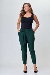 Зеленые брюки с разрезом и высоким поясом из текстиля Anelli 733 зелень