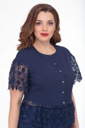 Деловой костюм из кружева и ткани с юбкой и жакетом Anelli 750 синий