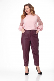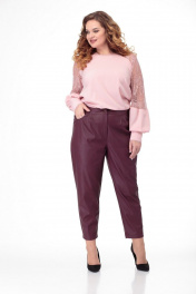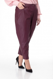 Брюки из экокожи с складками, карманами и металлизированной фурнитурой Anelli 903 вишня