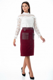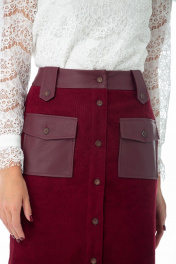 Юбка-карандаш из вельвета с кожаной отделкой создаст стильный образ! Юбка прямого силуэта, слегка заужена к низу, на передних частях выполнены талиевые вытачки, накладные карманы с клапанами из эко-кожи. Так же выполнены талиевые вытачки на спинке. Пояс и декоративные шлевки из эко-кожи дополняют модель. Застежка центральная на петли и пуговицы. Эта юбка великолепно впишется в Ваш демисезонный гардероб! При съемке для образа использована блуза Anelli Style – 933 белое кружево. Замеры: Рост фотомодели – 171 см. Размер фотомодели – 48. ОТ-обхват талии. ОБ-обхват бедер. ДИ-длина изделия. Размер 48. ОТ-78; ОБ-104; ДИ-62,5. Размер 50. ОТ-82; ОБ-108; ДИ-63. Размер 52. ОТ-86; ОБ-112; ДИ-63,5. Размер 54. ОТ-90; ОБ-116; ДИ-64.