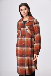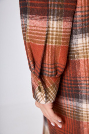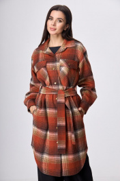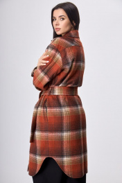 Рубашка пальтовая клетка миди с поясом на каждый день Anelli 935 красная_клетка
