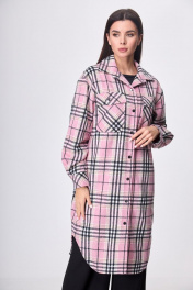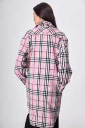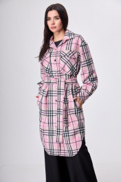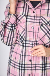 Рубашка пальтовая клетка миди с поясом и карманами Anelli 935 розовая_клетка