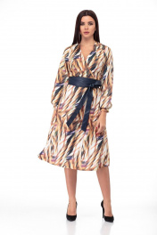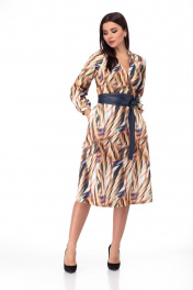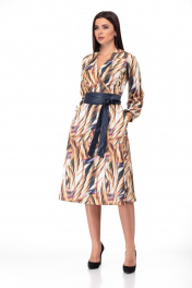 Платье из трикотажа с съемным поясом и прорезными карманами Anelli 938 мультиколор