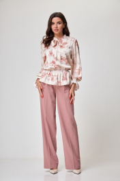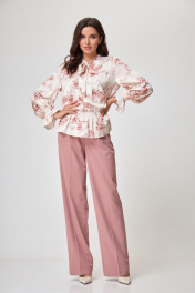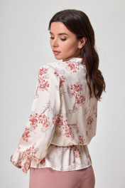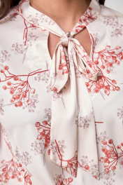 Бежевый и красный блуза из вискозы с сборкой и воротником-бантом Anelli 992 терракот