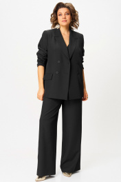 Модный брючный комплект-тройка с удлиненным жакетом станет отличным дополнением Вашего гардероба. Жакет прямого силуэта, на подкладке. По переду - центральная двубортная застежка на петли и пуговицы, нагрудные вытачки и функциональные прорезные карманы с клапаном. Полочку жакета украшает съемная (на пуговицах) декоративная рюша с кружевом. Спинка со средним швом. Рукав втачной длинный двухшовный, с имитацией шлицы, декорированной пуговицами. Жилет прилегающего силуэта с центральной бортовой застежкой на петли и пуговицы, на подкладке. Вырез горловины V-образной формы. Перед — с талиевыми вытачками и прорезными карманами с листочкой. Спинка со средним швом и талиевыми вытачками. Широкие брюки с высокой посадкой, с поясом на резинке. В боковых швах имеются функциональные наклонные карманы. Длина жакета: 73 см Длина рукава: 62 см Длина жилета: 52 см Длина брюк (с поясом): 114 см