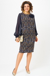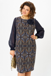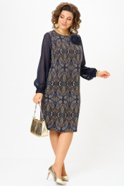 Комфортное платье из трикотажа с широкими рукавами из шифона - настоящая находка для каждой женщины. Свободное облегание и длина чуть ниже колена подчеркнут вашу элегантность и женственность, а мягкость ткани обеспечит приятные ощущения на протяжении всего дня и в любое время года. Платье станет идеальным выбором для любого случая: будь то рабочий день, свидание или вечеринка с друзьями. Платье полуприлегающего силуэта с округлой горловиной. Перед с нагрудными вытачками. Спинка с талиевыми вытачками, застежкой молнией и разрезом в среднем шве. Рукав втачной прямой длинный, на резинке по низу. В комплекте к платью прилагается съемное украшение из шифона в виде цветка. Длина платья: 103 см Длина рукава: 70 см
