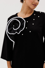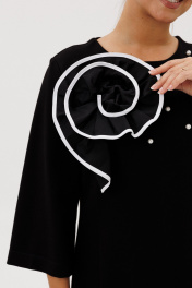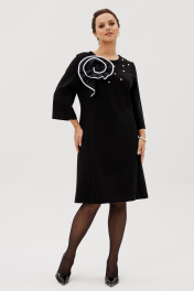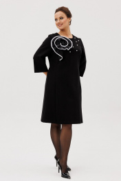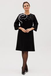 Платье трикотажное прямого силуэта умеренного объема. Вырез горловины округлый, по спинке застежка на потайную молнию, рукав 3/4 рубашечного покроя - 47см. Длина платья по спинке 97 см. Рост модели на фото 170см.