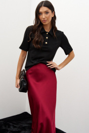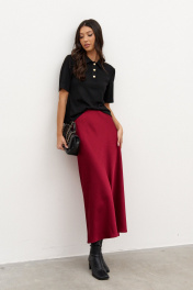 Стильная юбка полуприлегающего силуэта выполнена из струящегося полотна. Характеристики: полуприлегающий силуэт, подкладка, пояс на резинке. Длина по боковому шву 100 см.