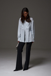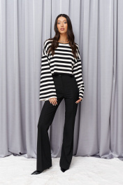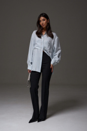 Брюки полуприлегающего силуэта с разведением к низу. Классические брюки базовый элемент гардероба. Идеально сочетаются с любым верхом. Характеристики: полуприлегающий силуэт, пояс стабильный, по переднему и заднему полотну брюк стрелки, по заднему полотну прорезные кармашки «обманки», длинна брюк по внутреннему шву 84 см.