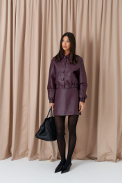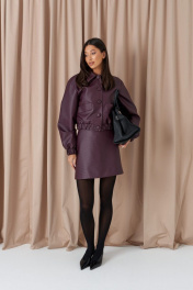 Юбка-мини. Выполнена из фактурной эко-кожи бордового цвета. С подкладкой. Силуэт - трапеция. Застёжка молния (в среднем шве заднего полотна). Длина 44 смЮбку дополнит жакет А5493