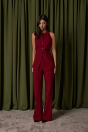 Брюки полуприлегающего силуэта с разведением к низу. Характеристики: полуприлегающий силуэт, пояс стабильный, по переднему и заднему полотну брюк стрелки, по заднему полотну прорезные кармашки «обманки», длинна брюк по боковому шву 112 см.