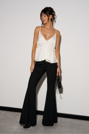 Брюки полуприлегающего силуэта с разведением к низу. Классические брюки базовый элемент гардероба. Идеально сочетаются с любым верхом. Характеристики: полуприлегающий силуэт, пояс стабильный, по переднему и заднему полотну брюк стрелки, по заднему полотну прорезные кармашки «обманки», длинна брюк по внутреннему шву 84 см.