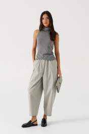 Джемпер свободного кроя. Выполнен из мягкого трикотажа серого цвета. Без подкладки. Воротник стойка. Длина спинки 54 см