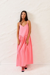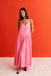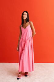Розовый сарафан с регулируемыми бретелями и свободным низом ANNETE A3331