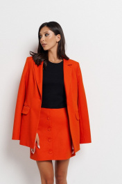 Юбка полуприлегающего силуэта выполнена из костюмной ткани. Характеристики: полуприлегающий силуэт, подкладка, по переду функциональные пуговицы. Длина 45 см.