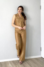 Костюм женский брючный летний из легкой дышащей ткани. Выполнен в стиле ""сафари"". Жилет на пуговицах с накладными карманами в области груди. Брюки прямого кроя на поясе, средняя посадка, застежка на ""молнию"" и пуговицы. Походит для повседневной носки, прогулок по городу, отдыху. Рост модели на фото 170 см, размер 44. длина верха по спинке 57 см, длина брюк 108 см. Бережная стирка 30С