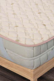 Наматрасник стёганый "Комфорт". Наполнитель: полиэфирное силиконизированное термоскрепленное волокно Материал чехла: бязь (100% хлопок) Плотность наполнителя г/кв.м: 200 Вид крепления: угловое (4 угла) Тип наматрасника: стёганый, с окаймляющей лентой *: Подходит для людей, склонных к аллергии !!! Наматрасник является базовым и может быть предоставлен в любом цвете от производителя !!!