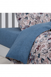 Размер 1,5-спальный; Плотность ткани, г/м.кв. 120; Размер пододеяльника, см 143*215; Размер простыни, см 150*220; Размер наволочки, см 70*70; Комплектация; 1 пододеяльник, 1 простыня, 2 наволочки; Особенности отделки: пододеяльник с карманом, наволочки с клапаном, простыня без резинки; Правила ухода: необходима стирка до первого использования, стирка при t не выше 40С, моющими средствами для цветного (не универсальными), можно гладить при t подошвы утюга до 200С, обычная барабанная сушка, отбеливание запрещено, химчистка запрещена.