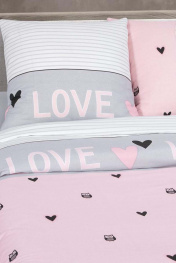 Постельный комплект из бязи 2-спальный, розовый и серый, 7 предметов АРТПОСТЕЛЬ 504 гламур