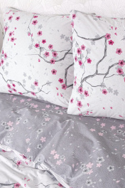 Комплект постельного белья (поплин). Пододеяльник 1 шт: длина 215 см, ширина 175 см Простыня 1 шт: длина 215 см, ширина 200 см Наволочки 2 шт: 70*70 см Особенности отделки: пододеяльник с карманом, наволочки с клапаном «Киото» – изящное сочетание японской эстетики и модного минимализма. На комплекте изображены утонченные веточки сакуры – одного из главных символов восточной культуры. Эти хрупкие и нежные цветы ассоциируются с красотой и гармонией. Постельное белье с сакурой несет атмосферу комфорта и умиротворения. Необычное украшение спальни!