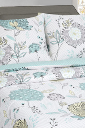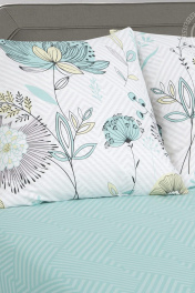 Комплект постельного белья Размер: 2-спальный c простыней Евро Пододеяльник 1 шт: длина 215 см, ширина 175 см Простыня 1 шт: длина 215 см, ширина 240 см Наволочки 2 шт: 70*70 см Особенности отделки: пододеяльник с карманом, наволочки с клапаном «Тишина природы» — это постельное белье поплин с чудесным цветочным дизайном. Перед нами нежные листья и лепестки, душистые травы и пушистые одуванчики. Каждая деталь напоминает о цветущих лугах, которые полны солнечных лучей, приятных ароматов, красивых цветов и летних красок. Постельный набор из 100% хлопка с изящным принтом займет достойное место в обновленном интерьере.