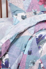 Постельное белье пэчворк всегда в тренде. С давних времен оно пользуется популярностью и является оригинальным декором интерьера. На комплекте из поплина интересный принт, который выполнен в стилистике лоскутной мозаики. Здесь ромбы, словно лоскутки, соединены между собой. Все фигуры в нежных тонах и украшены изящными лепестками. «Пэчворк» олицетворяет изысканность, женственность, романтичность. Это модное постельное белье из 100% хлопка, которое покорит ваши сердца. Материал: Поплин. Состав: Хлопок 100%. Плотность ткани: 115 гр./м.кв. Пододеяльник: 1 шт. - 215*200; Простыня: 1 шт. - 215*240; Наволочка: 2 шт. - 70*70.