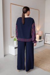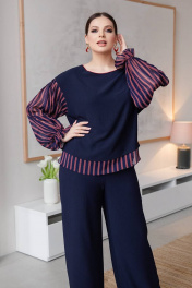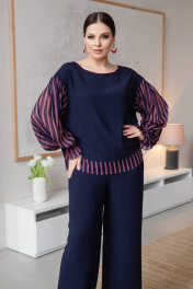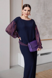 Демисезонный свитшот с баской и разрезами из вискозы ASV 2615 темно-синий
