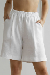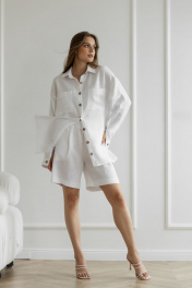 Летний леновый костюм рубашка и шорты с карманами Atelero 1055 белый