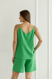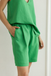 Летний леновый костюм топ и шорты с карманами Atelero 1073 зеленый