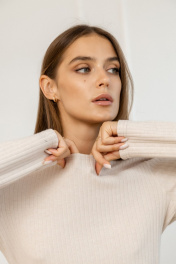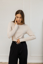 Лонгслив из трикотажа облегающий с вырезом лодочка Atelero 1113 бежевый